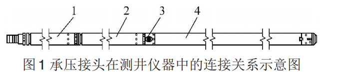 設(shè)計了承壓接頭連接儀器的探頭短節(jié)和電子線路短節(jié),該承壓接頭提供了有效的電連接通道,從而解決石油測井儀器耐高溫高壓電連接問題。承壓接頭主要由接頭體構(gòu)成,由17-4PH不銹鋼制成。對接頭體進(jìn)行了強度分析和試驗測試,結(jié)果滿足要求。該設(shè)計已成功應(yīng)用于感應(yīng)測井儀器和聲波測井儀器,進(jìn)行產(chǎn)業(yè)化生產(chǎn),已取得不錯的經(jīng)濟(jì)效果。